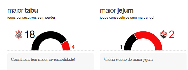 Abaixo, alguns números sobre o histórico deste confronto:1 Pré Jogo - Corinthians x Vitória 2 Pré Jogo - Corinthians x Vitória 3 Pré Jogo - Corinthians x Vitória